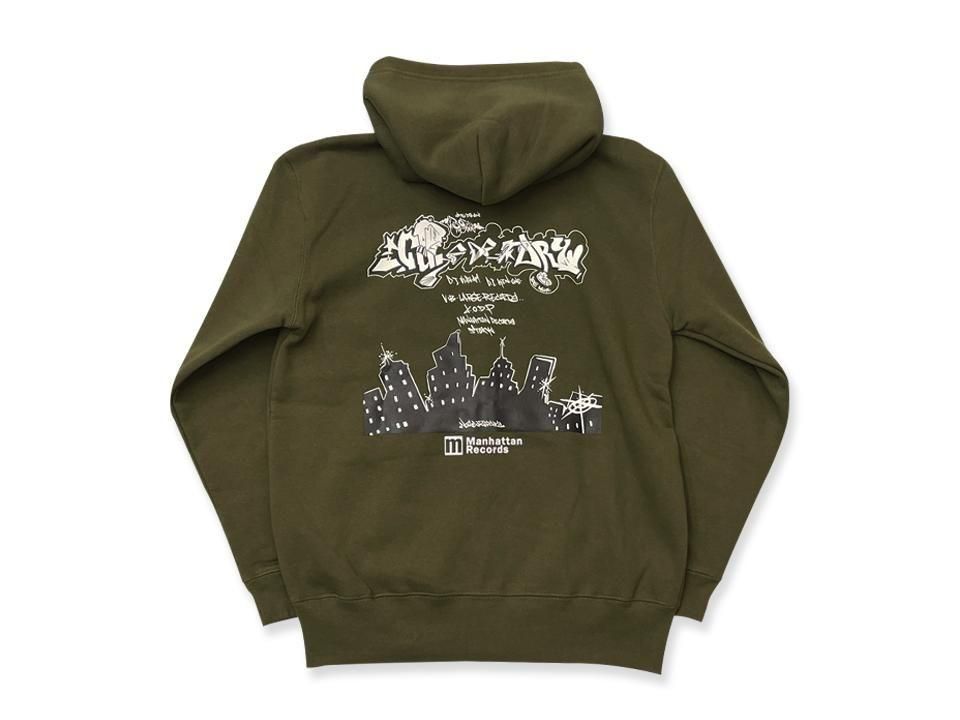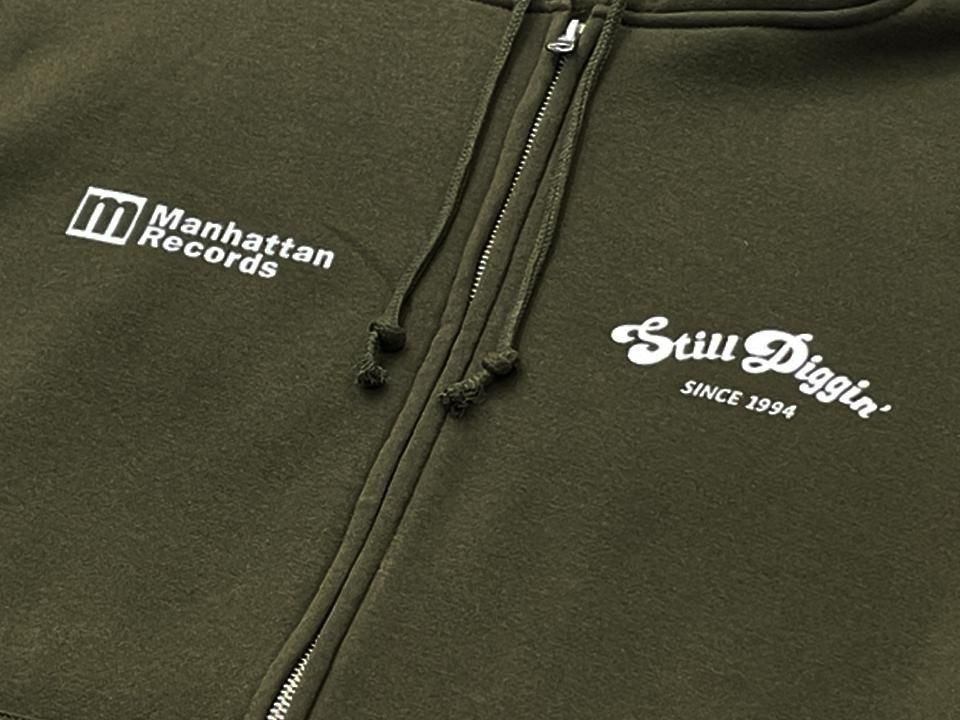 盟友Manhattan Recordsと共同で制作された当店の30周年記念バイナル「CUTS OF FURY」のジャケットデザインががっつり落とし込まれたB-BOY度満点のジップアップパーカー。