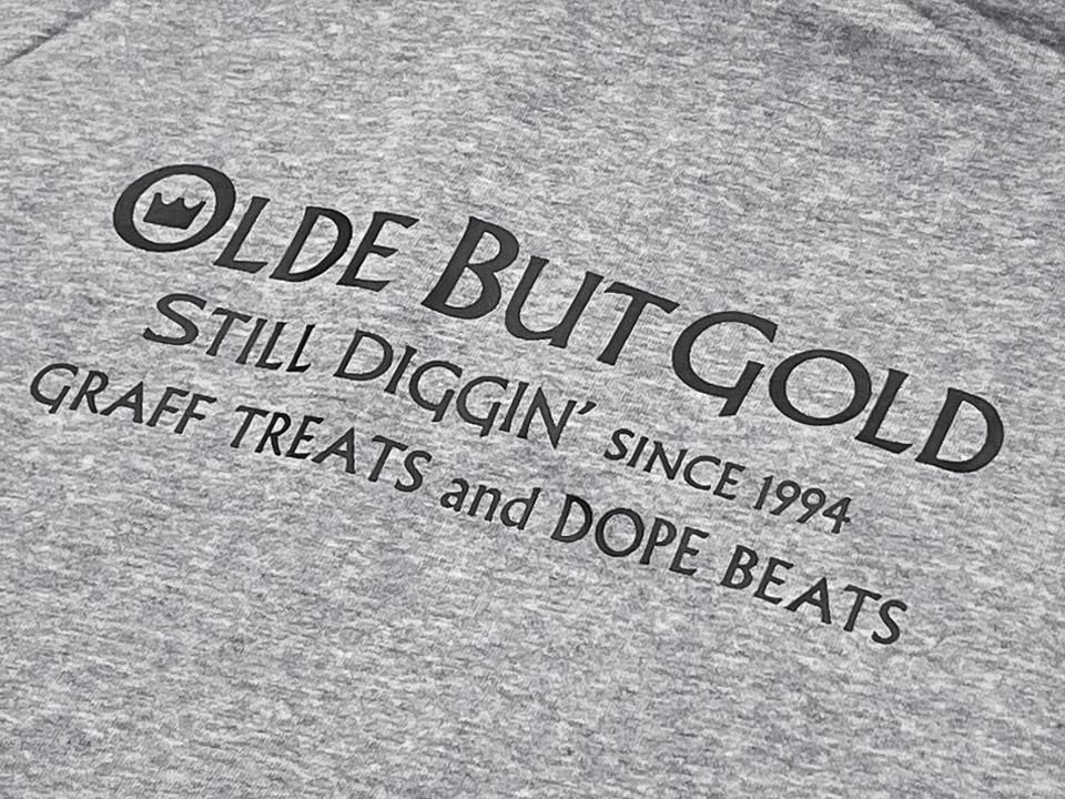 古き良きもの全てに当てはまり音楽の世界でも名盤や名曲に対して使われる褒め言葉「OLDE BUT GOLD(時代を問わず価値を失わない、色褪せない)」にリプレイスすることでOLD SCHOOL HIPHOPへのリスペクト、流行に左右されない当店のスタイルを表現。